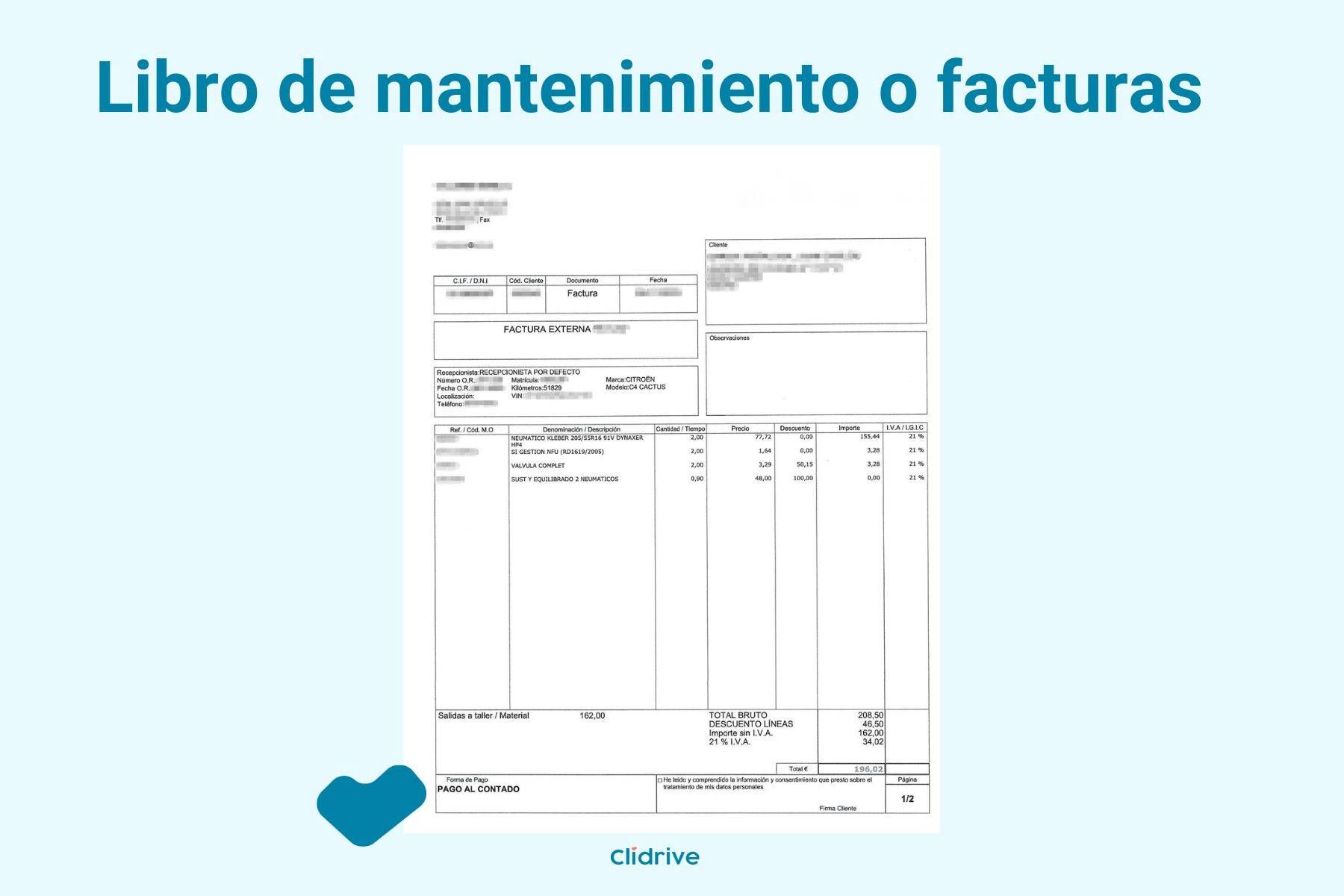 Libro de mantenimiento o facturas